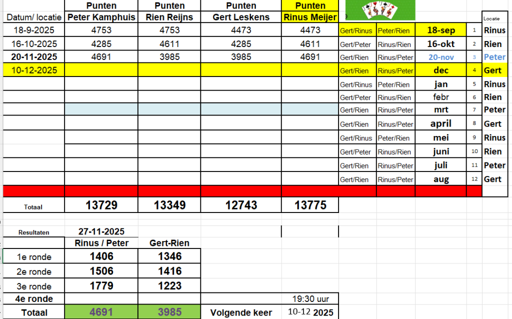 De resultaten worden bijgehouden door Rien.