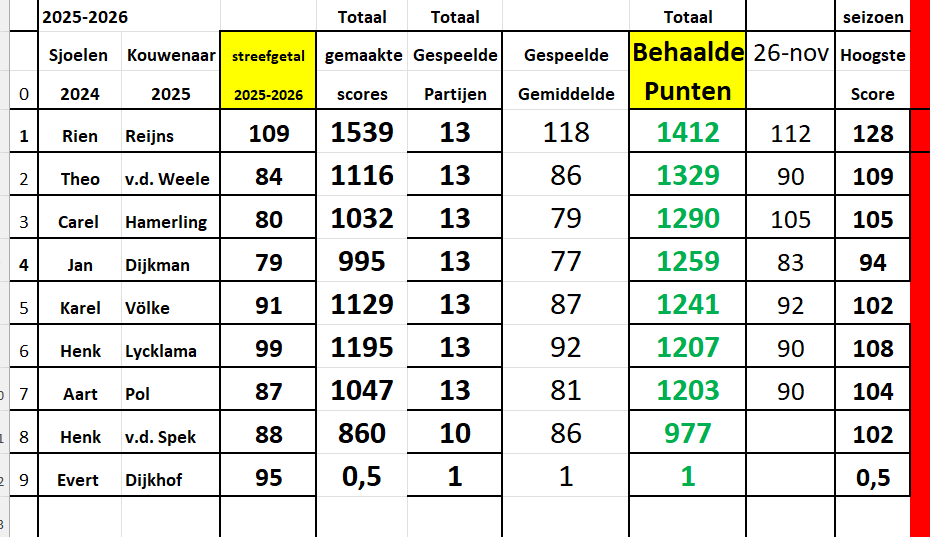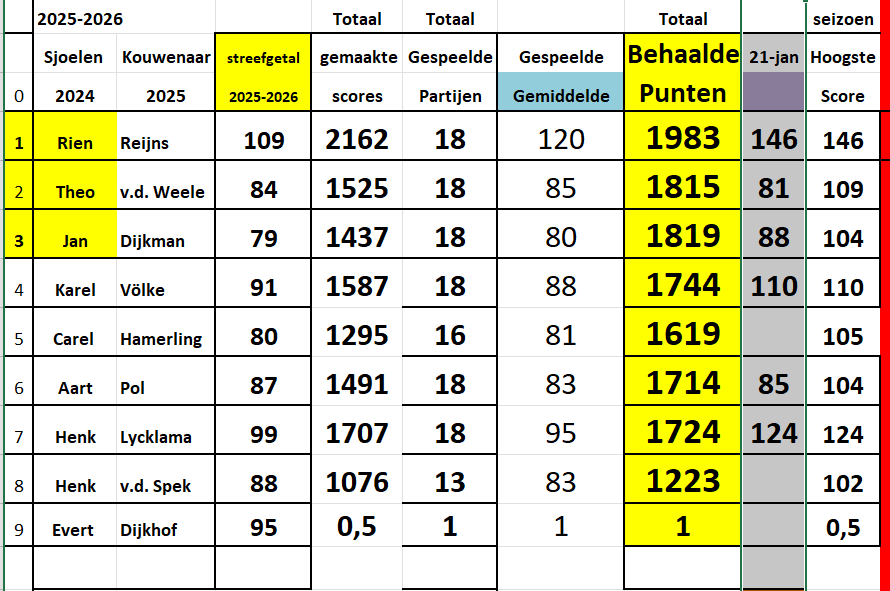 Hoewel gezelligheid altijd op de eerste plaats komt, worden de punten wél netjes bijgehouden.
