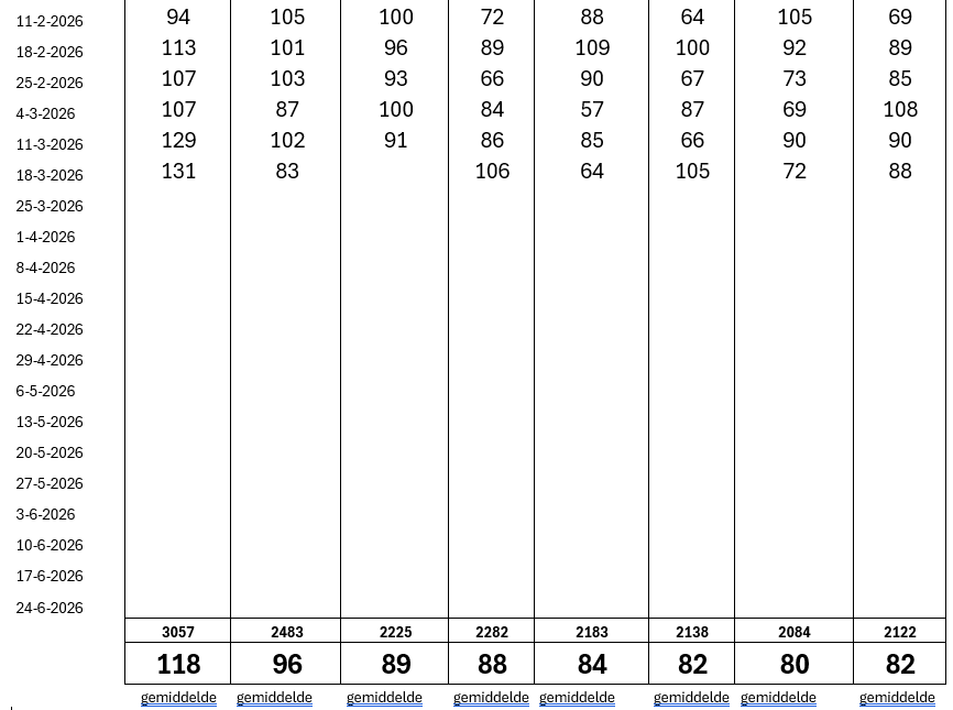 De stand van het sjoelen t/m 18 maart